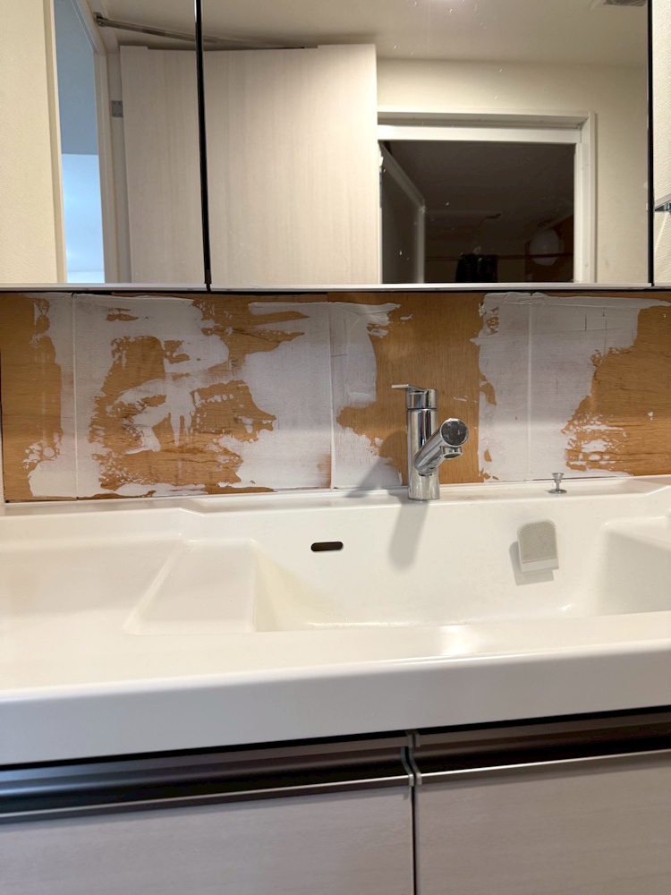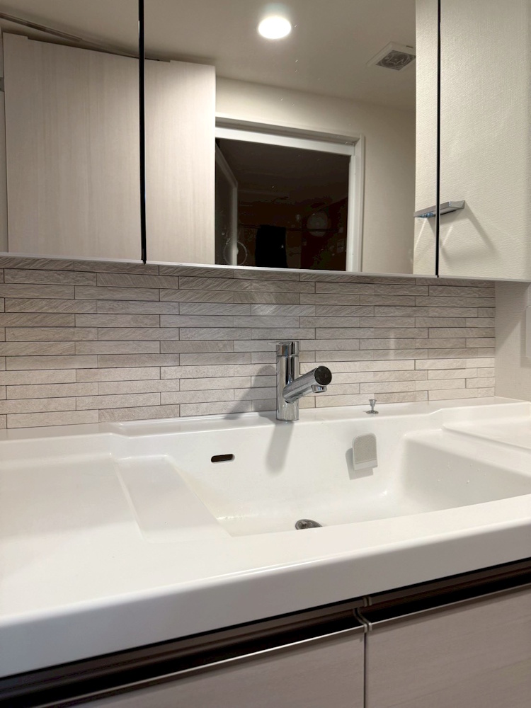 ◉玄関に既存で取付てあるミラー設置壁にレイヤーミックス ECP-SET/LAY1(ホワイト)