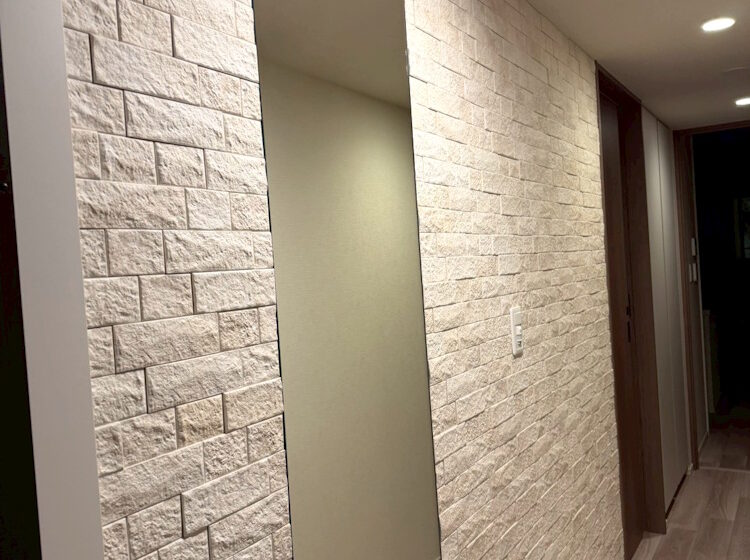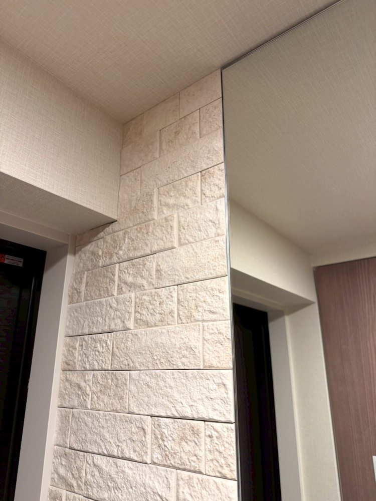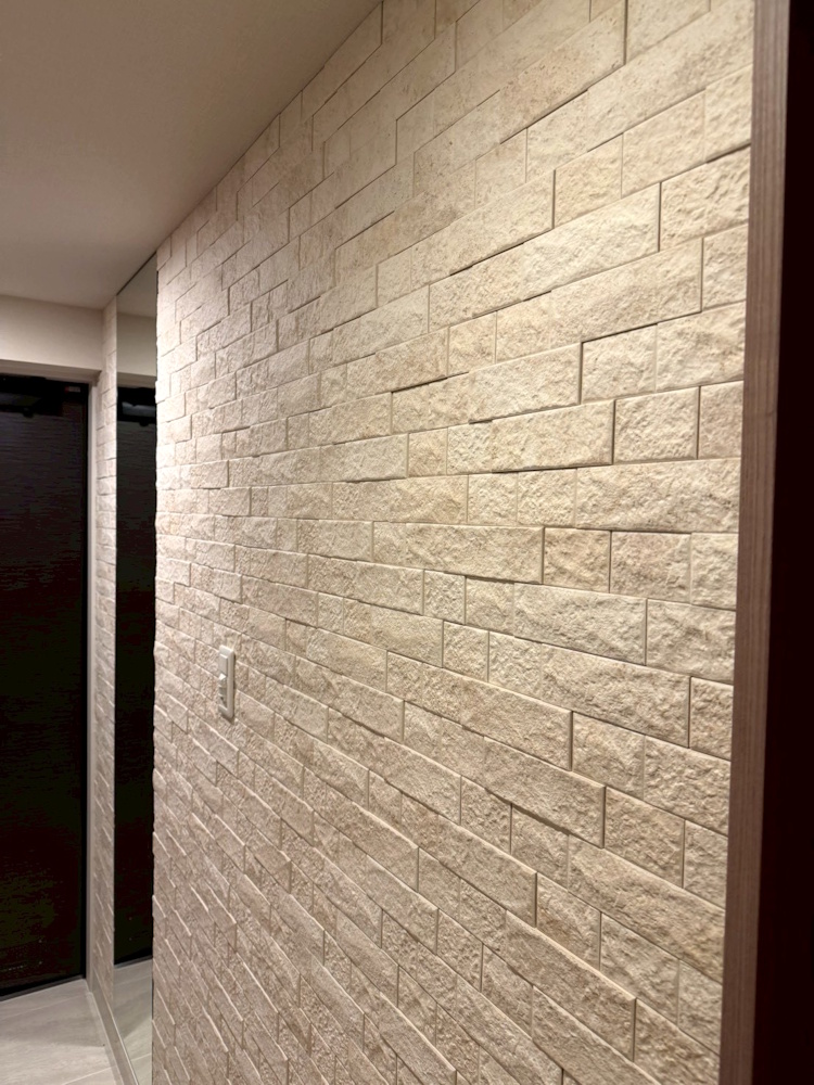 ライムストーンの繊細な柄と陰影感のあるレリーフの組み合わせが空間をナチュラルでお洒落に演出し素敵ですよね☺️