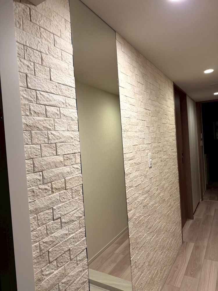 ◉玄関・廊下にヴィストNX クリーム(ECP‐R/VIN1)とオーダーミラー組み合わせ