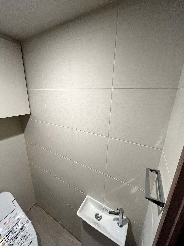 トイレや洗面室などの狭い壁面は大判柄を選ばれる方が多いですね。その理由は掃除のしやすさも考慮していると思います。